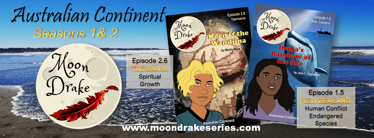 Our fourth poster, with episodes from Seasons 1 & 2, presents stories from the Australian Continent. It was such a blessing to focus on this continent with seasoned screenwriter and author, Martin Nuza. Each of these children’s stories depict dynamic characters and harrowing adventures through the intriguing cultures of Tasmania and New Zealand.